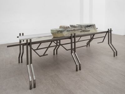 Marta Dyachenko’s studies in architecture and sculpture shape a practice which circumvents our build environment, in a nuanced and reductive vocabulary, to uncover the beauty and horror of its logic. Often taking the appearance of a Machete, she models these ghostly forms which fictionalize manufactured reality and it’s means of production. This is achieved through the subversion of base materials, concrete and steel, in nuanced reductions.