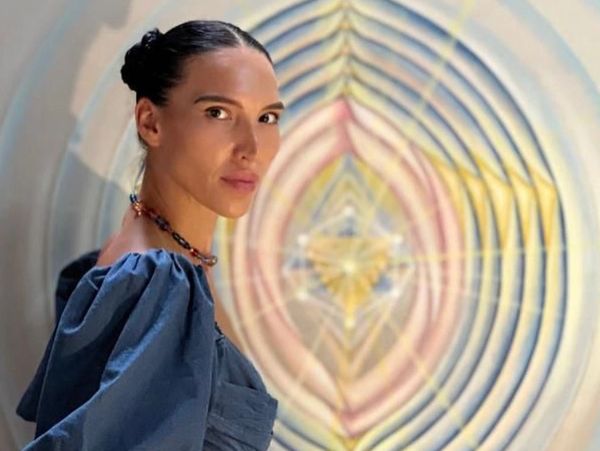 Aigana Gali (b. Kazakhstan) is a multi-disciplinary artist, born on the ancient crossing of the Great Silk Road in Almaty, Kazakhstan. Gali’s works return to the symbols of her ancestors and the cosmology of the Tengri. Composing geometric compositions from a central point on the canvas, the abstract shapes and corporeal forms radiate outwards like a beam of light.